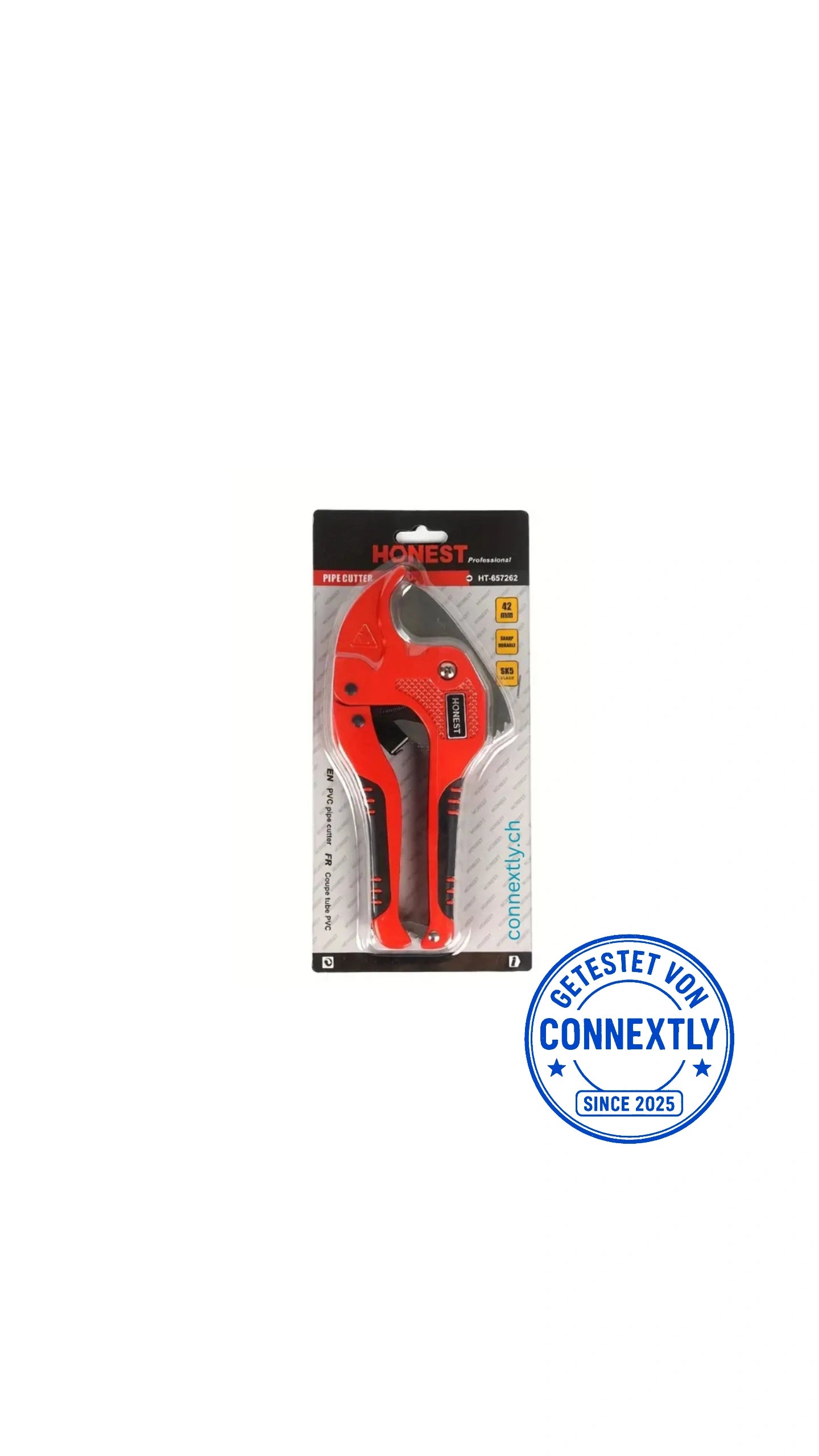 Die scharfe Klinge sorgt für präzise Schnittkanten ohne Verformung – ideal für dichte Rohrverbindungen.